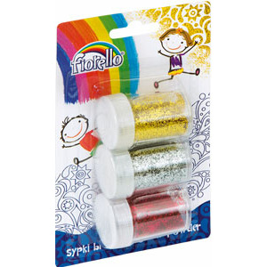 * jednostka sprzedaży: opak.3 * dekoracyjne drobinki brokatu * namaluj odpowiedni kształt klejem i posyp brokatem * przeznaczony do dekoracji papieru, kartonu, drewna i innych powierzchni * w zestawie 3 kolory x 8 g * zgodne z wymaganiami UE