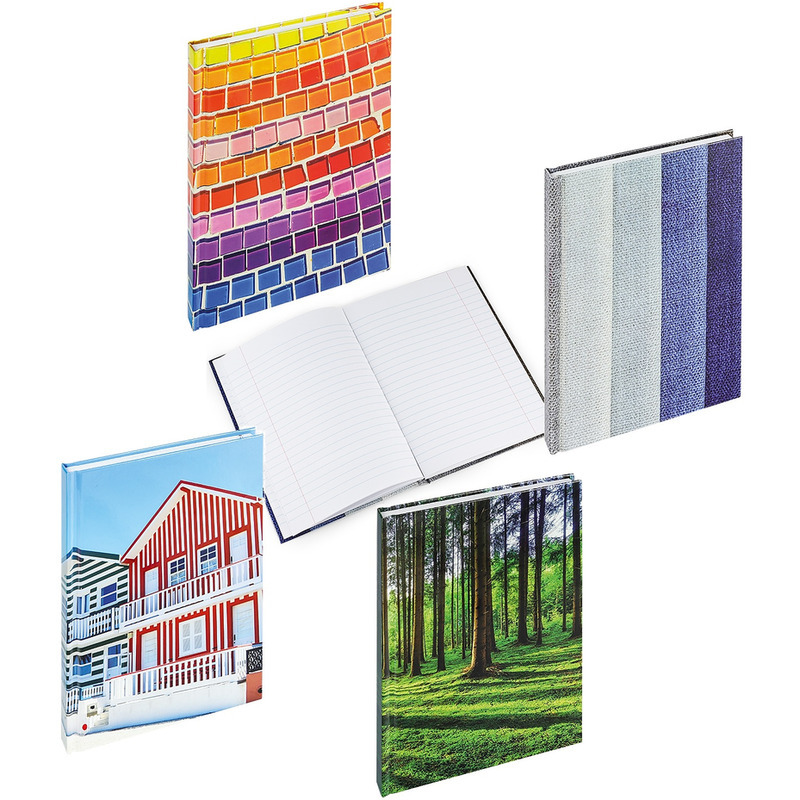 * twarda laminowana oprawa * grzbiet szyto-klejony * liniatura: linia * oznaczone marginesy * gramatura papieru 70 g/m2 * format A5 * 96 kartek * wzory okładek wysyłane losowo