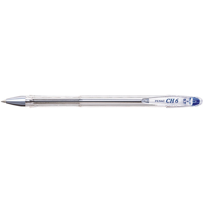 * długopis CH6 0,7 mm PENAC * klasyczny długopis z wymiennym wkładem (symbol wkładu: PENAC CH6, SOFT GLIDER+ 0,7 mm) * tusz na bazie oleju * obudowa z odpornego na pęknięcia mocnego tworzywa ABS (akrylonitryl-butadien-styren to jedno z najbardziej popularnych i rozpowszechnionych tworzyw sztucznych, materiał ten jest stosowany niemal w każdej branży, znajdziemy go w samochodzie, obudowie telewizora, zabawkach, sprzęcie sportowym itp., swoją popularność zawdzięcza wysokiej wytrzymałości i dobrym parametrom przetwórczym) * odporna na uszkodzenia i twarda kulka wykonana z węglika wolframu * gniazdo, w którym osadzona jest kulka, wykonane jest z mosiądzu wysokoniklowego * profilowana rękojeść z antypoślizgowymi żłobieniami * skuwka z klipsem i elementem w kolorze tuszu * metalizowana końcówka * średnica kulki: 0,7 mm * grubość linii pisania: 0,33 mm * długość linii pisania: do 1700 m * kolor obudowy: transparentny * kolor wkładu: czarny, czerwony, niebieski * certyfikat ISO 9001:2001 i ISO 12757 * jednostka sprzedaży 1 sztuka