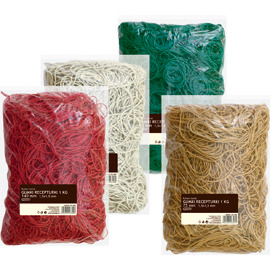 * jednostka sprzedaży: opak. * elastyczne gumki * losowy dobór koloru, dostępne: naturalny, zielony, biały oraz czerwony * pakowane w woreczki * rozmiar: 1,5 x 1,5 mm * średnica: 100 mm * długość po złożeniu: 16 cm