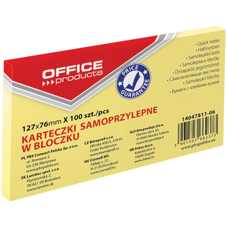 Karteczki Office Products 76x127mm żółte (100)