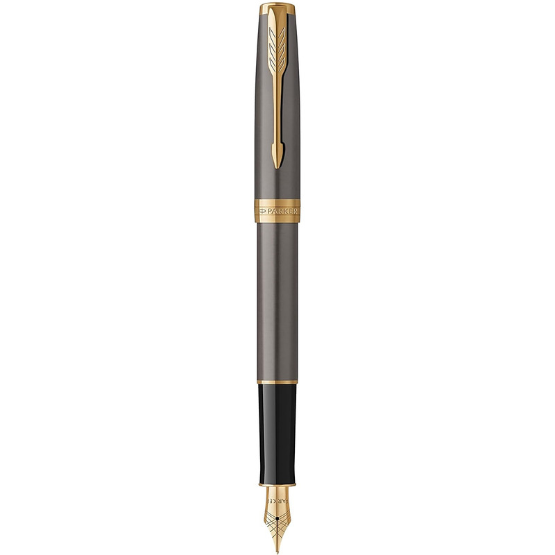 * pióro wieczne Parker Sonnet GT – ponadczasowy symbol elegancji (GT – skrót od angielskiego GOLD TRIM, czyli złote wykończenia – platerowane złotem – wykończenia to zewnętrzne części pióra: stalówka, dźwigienka, klips, pierścień, skuwka, korona) * korpus i skuwka delikatnie szczotkowane * skuwka zamykana na wcisk * wykończenie Sonnet w odcieniach szarości i złota połączone z luksusowym wzornictwem sprawiają, że model ten zdecydowanie jest idealnym przykładem wyszukania marki Parker * misterne detale i złota powłoka wykonana techniką PVD na klipsie oraz mosiężne wykończenia idealnie komponują się z nasadką i korpusem ze stali szlachetnej, pięknie wykończonym lakierem w klasycznym odcieniu szarości * to wzornictwo charakterystyczne dla marki Parker, emanujące elegancją i subtelnością * elegancki profil modelu Parker Sonnet przyjemnie leży w dłoni, zapewniając doskonałe wrażenia z pisania * precyzyjnie zaprojektowany, wykonany z najwyższą starannością i doskonale wyważony – model ten zapewnia poczucie pewności siebie i wyszukania odczuwane zawsze, gdy po niego sięgasz * stalówka wykonana ze stali szlachetnej – pozłacana * rozmiar stalówki: F (cienka) * zestaw składa się z pióra wiecznego, pudełka prezentowego Parker Premium, dwóch nabojów startowych czarnych oraz tłoczka Functional * symbol produktu: 2213680 * jednostka sprzedaży 1 sztuka * PARKER to jedna z najbardziej znanych na świecie marek piór wiecznych i długopisów – stała się synonimem najwyższej jakości artykułów piśmienniczych – twórcą firmy był GEORGE’A SAFFORD PARKER – powstanie firmy PARKER PEN COMPANY datuje się na rok 1888, zaś w roku 1894 wymyślono nowy, lepszy system doprowadzania atramentu do stalówki – w tym samym roku PARKER opatentował swoje pierwsze istotne dla rozwoju piśmiennictwa pióro – PARKER LUCKY CURVE