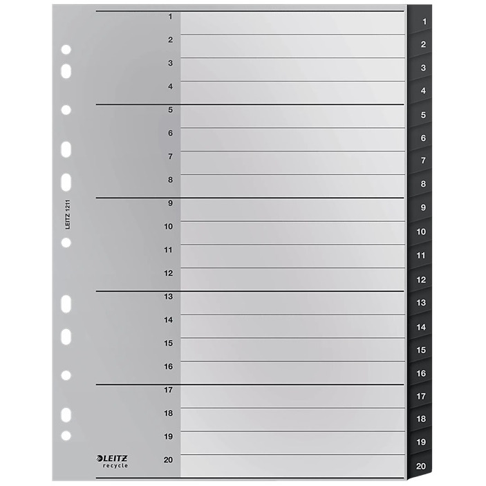 Przekładki PP Leitz Recycle A4 Maxi 1-20 czarne