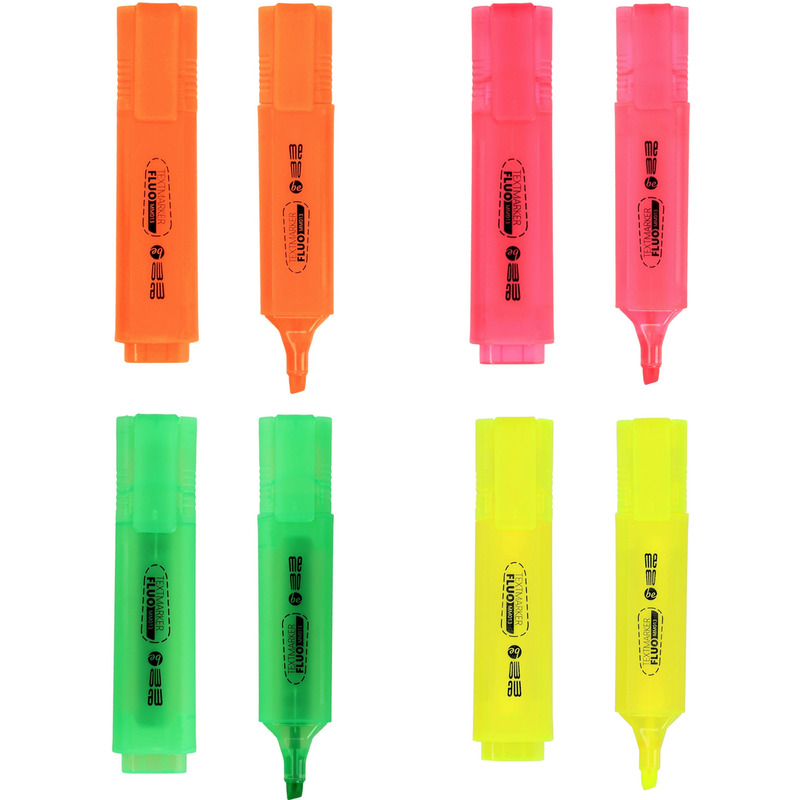 * zakreślacze do biura i szkoły * idealne do zaznaczania fragmentów tekstów i notatek na większości rodzajów papieru * ścięta końcówka pozwala na uzyskanie linii 1-5mm * tusz na bazie wody nie przebija na drugą stronę kartki * jasne neonowe kolory ułatwiają wyróżnianie ważnych informacji
